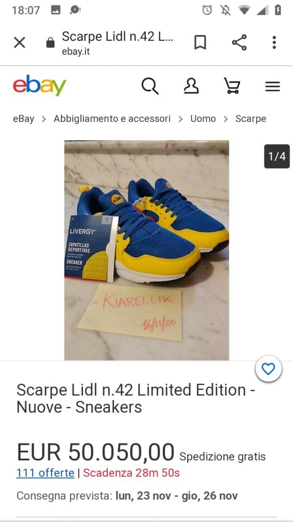 Huffington Post registra inserzioni che vendono l’oggetto del desiderio anche per 200 euro, con bagarini che “investono” nelle scarpe Lidl per venderle a prezzi decuplicati in seguito?