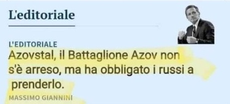 L’editoriale di Massimo Giannini sul battaglione Azov è dunque un fake creato ad hoc che lo stesso direttore de La Stampa ha smentito.