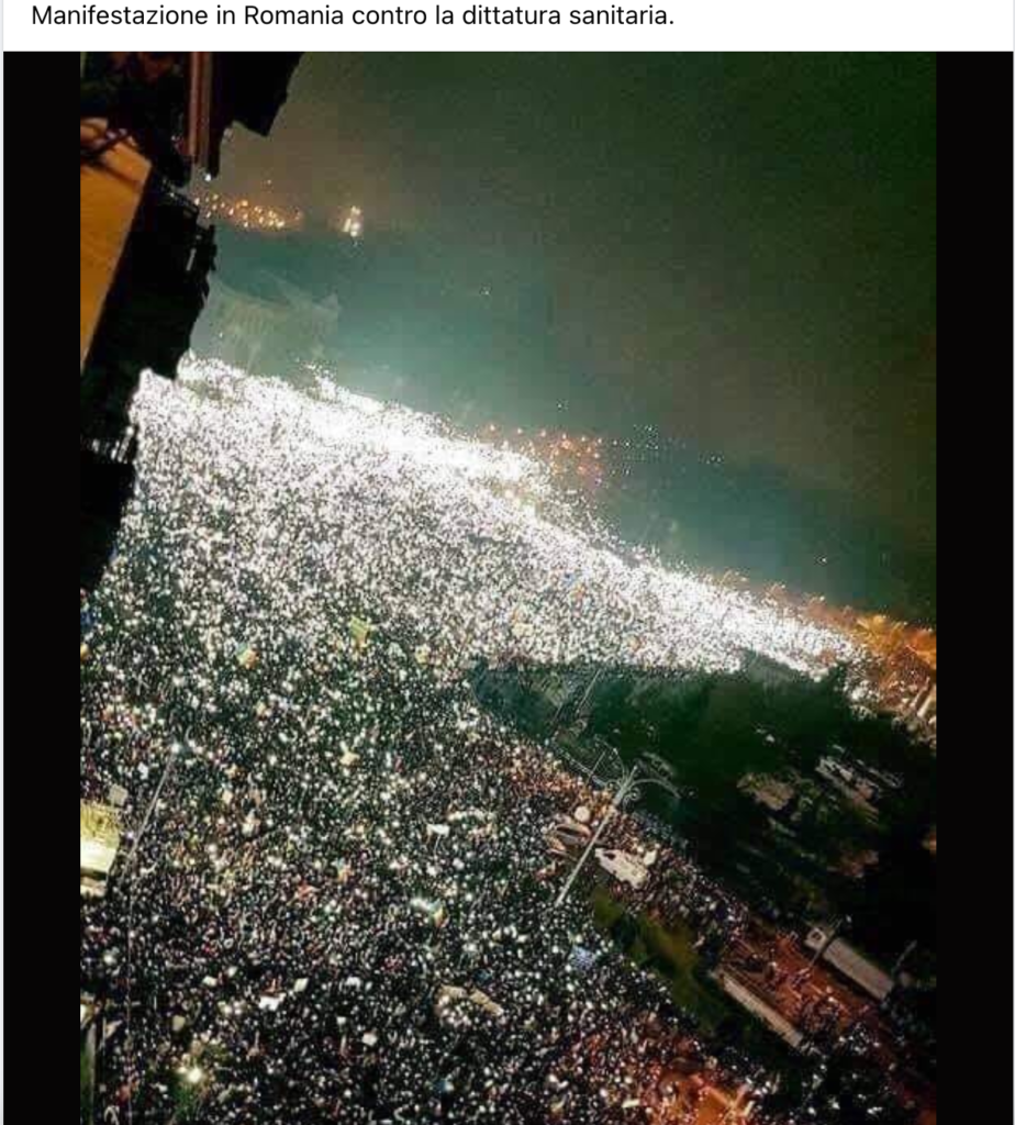 Ovviamente nulla di tutto questo riguarda una “Manifestazione in Romania contro la dittatura sanitaria”.