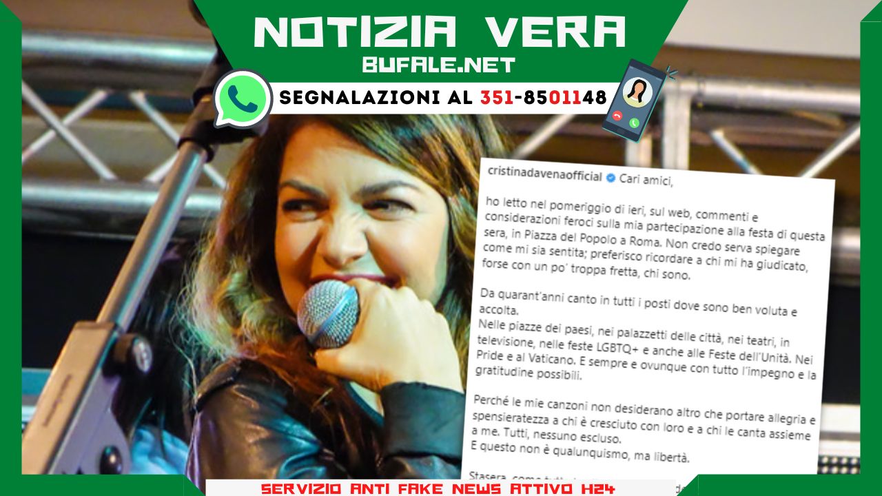Un giorno dopo le polemiche, Cristina D’Avena si è affidata ai social per rispondere a quanti l’hanno giudicata per la sua partecipazione alla festa di Fratelli D’Italia. Il suo messaggio: