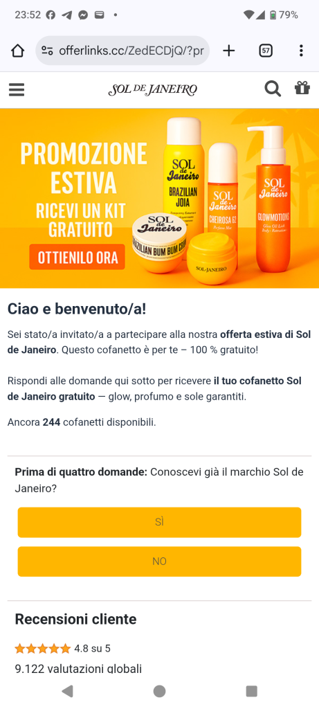 L’offerta estiva di Sol De Janeiro è un caso di phishing