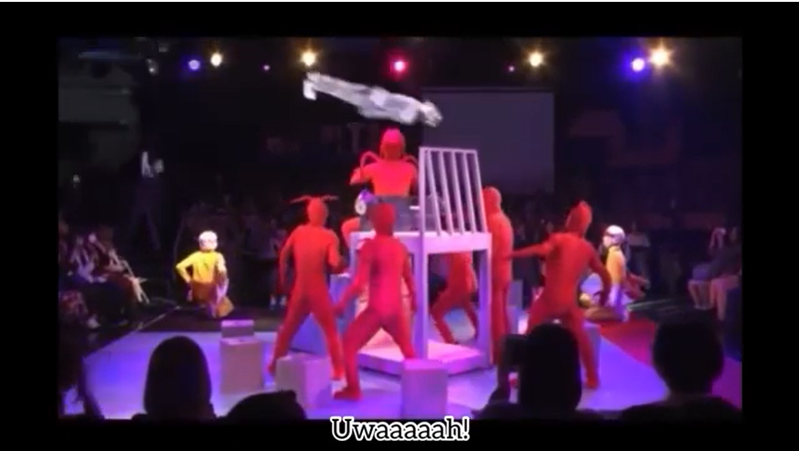 E dove persino l’orrendo robot Barican viene rappresentato nella gloria di un costume brutto in un’opera teatrale dal sapore trash che, avrete compreso, comprende il capolavoro trascendentale “Dynamite in the Brain” con tanto di riedizione drammatica del lancio del vecchio.