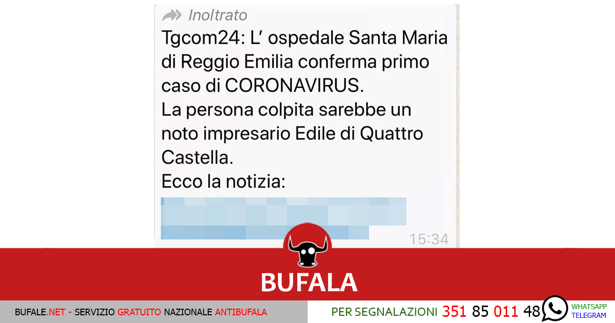 L’Ospedale Santa Maria di Reggio conferma primo caso di CORONAVIRUS