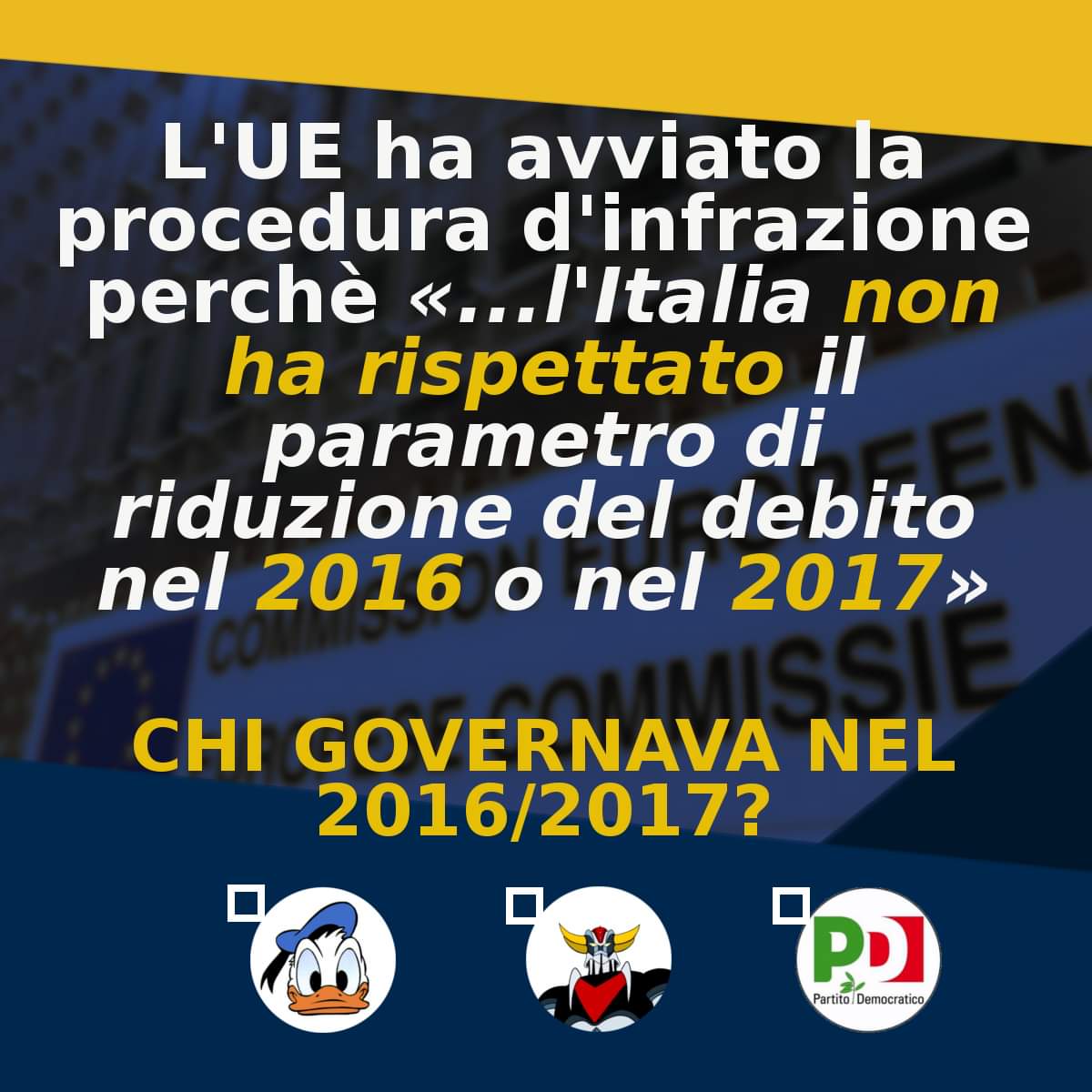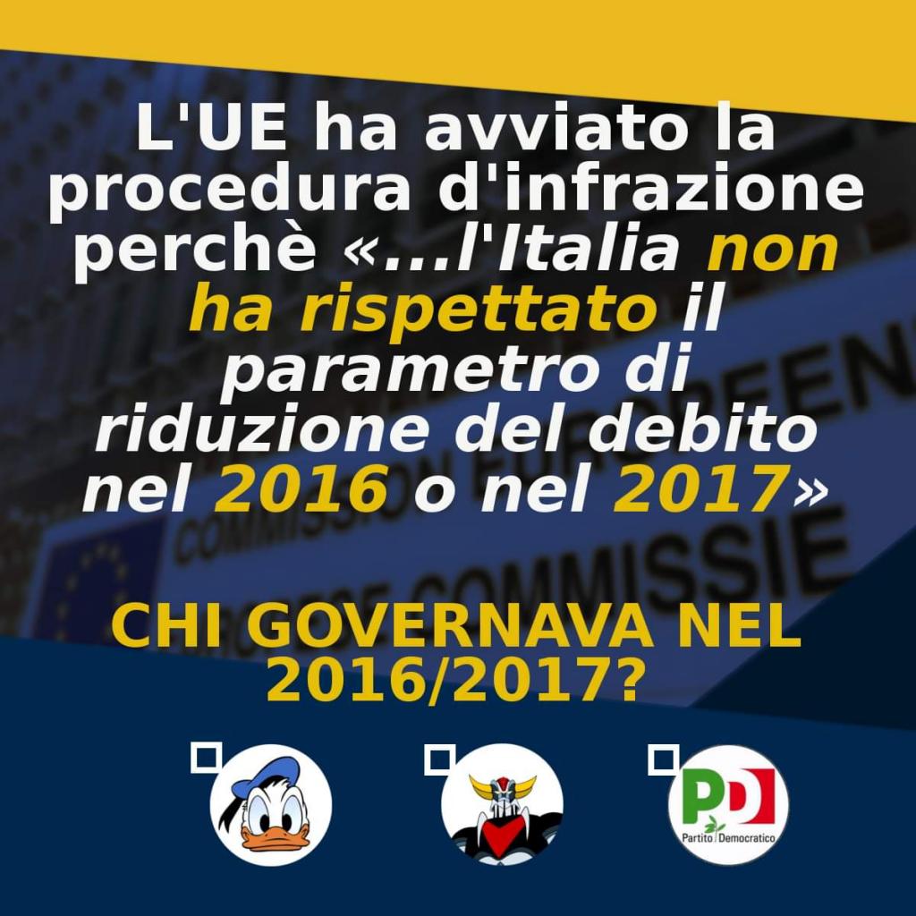 L’UE ha avviato la procedura d’infrazione perché l’Italia non ha rispettato il parametro di riduzione del debito, colpa del PD!