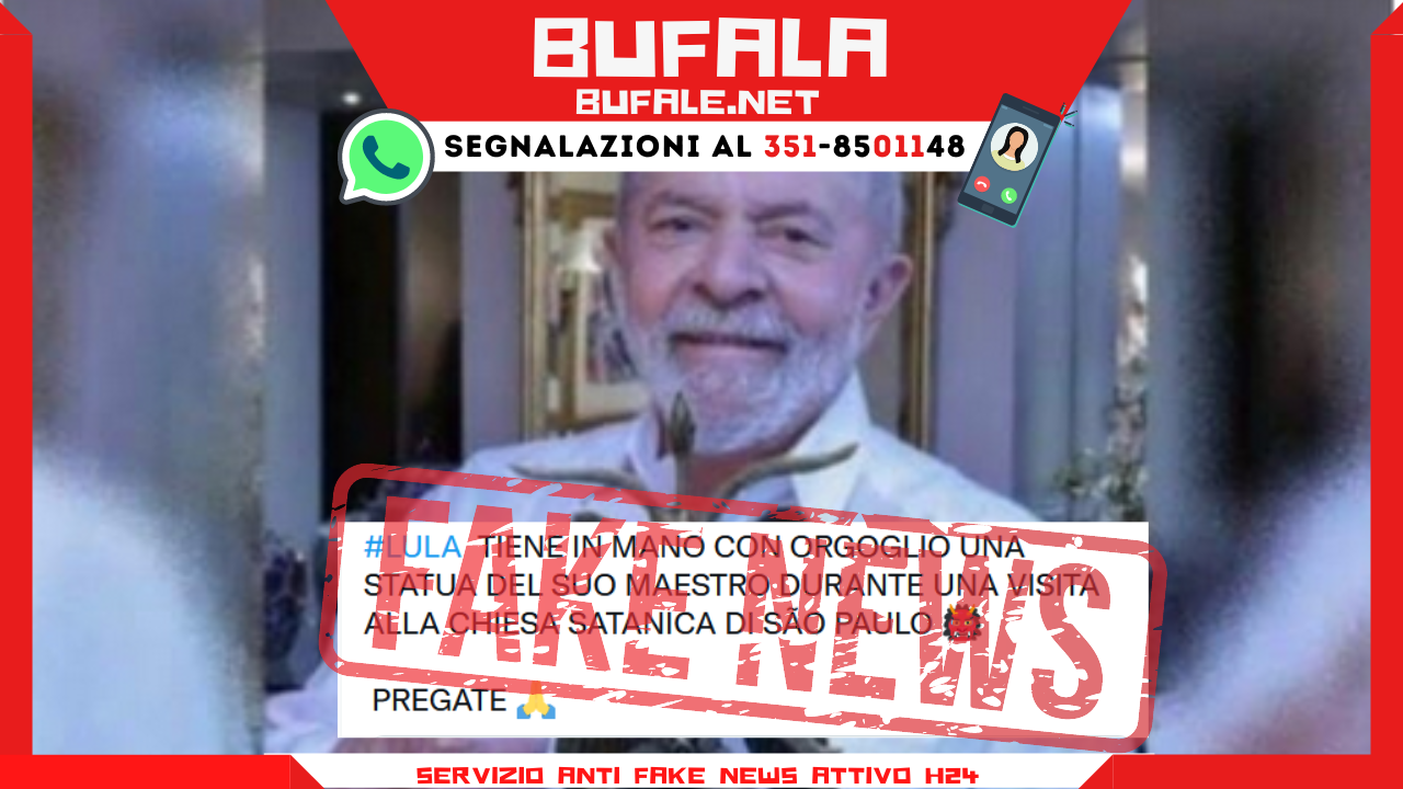 Lula con una statua di Satana a San Paolo echeggia la presunta immagine di Draghi col satanello di cristallo (che poi era una colombella stilizzata) e fa parte di un ricco filone di brutti Photoshop a tema satanista.