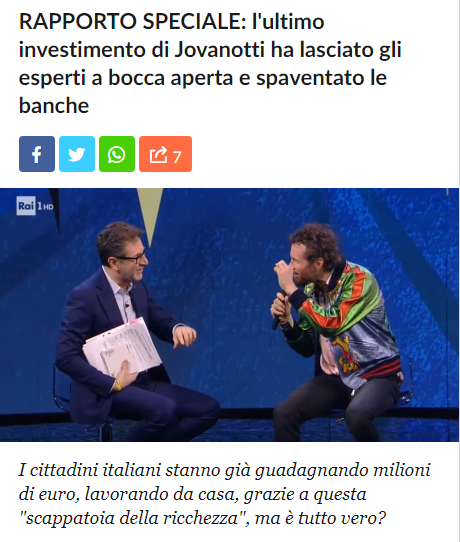 Gli investimenti in Bitcoin sono sicuri? Non saremo noi a dirvelo, in quanto non disponiamo degli strumenti per poter mettere in discussione il mondo Bitcoin e il mondo del trading. Il problema è l’impiego indiscriminato di finti testimonial di alcune piattaforme di trading online, testimonial che possono essere cantanti, attori, conduttori e altri VIP totalmente ignari dell’azione di questo genere di bufalari. Oggi tocca a Lorenzo Cherubini, noto ai più come Jovanotti.
