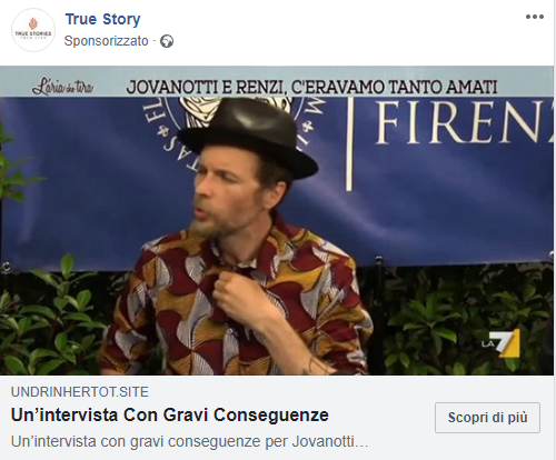 Aprendo l’articolo, invece, ci troviamo di fronte alla falsa pagina di Repubblica nella quale si parla di una dichiarazione di Cherubini rilasciata durante una puntata di Che Tempo che Fa condotto da Fabio Fazio. Il fotogramma estrapolato dallo show televisivo, in effetti, proviene dalla puntata del 3 dicembre 2017 disponibile su YouTube, ma possiamo constatare noi stessi che Jovanotti non fece alcuna menzione su un’improbabile strategia per ottenere guadagni facili:
