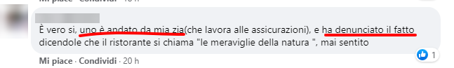 È vero, sì. Uno è andato da mia zia (che lavora alle assicurazioni) e ha denunciato il fatto dicendole che il ristorante si chiama “le meraviglie della natura”, mai sentito.