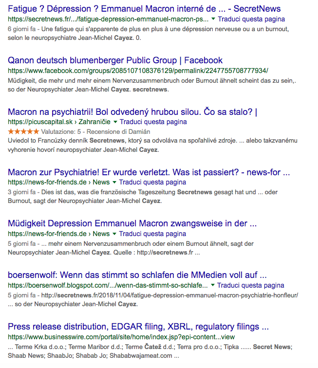Una lerciata quindi la storia di Macron ricoverato in psichiatria, un pezzo di bizarro fiction da porre in sequenza con Macron festeggiatore di Polka e tutte le bizzarre attribuzioni del portale.
