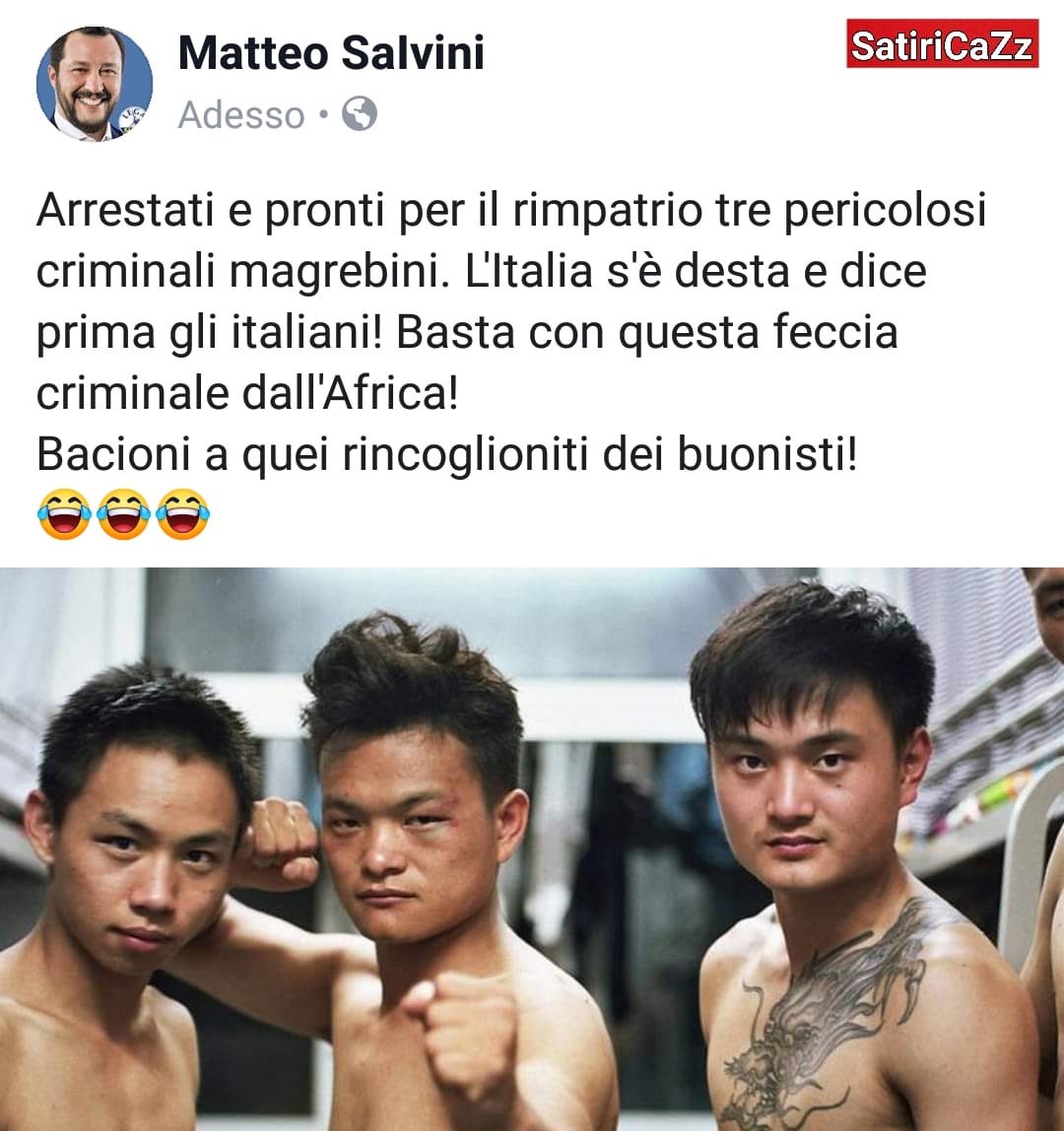 Uno screenshot ci viene segnalato dai nostri lettori. Si tratterebbe di un post di Matteo Salvini nel quale comunica l’arresto e il rimpatrio di tre pericolosi magrebini, ma in allegato troviamo una foto che mostra tre cinesi.