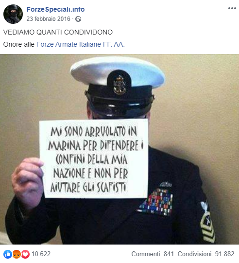 Nel caso dell’immagine da noi presa in esame, il messaggio originale riportava: “I didn’t join the Navy to fight for Al Qaeda in a syrian civil war! / Non mi sono unito alla Marina Militare per combattere per Al Qaeda durante una guerra civile siriana!”.