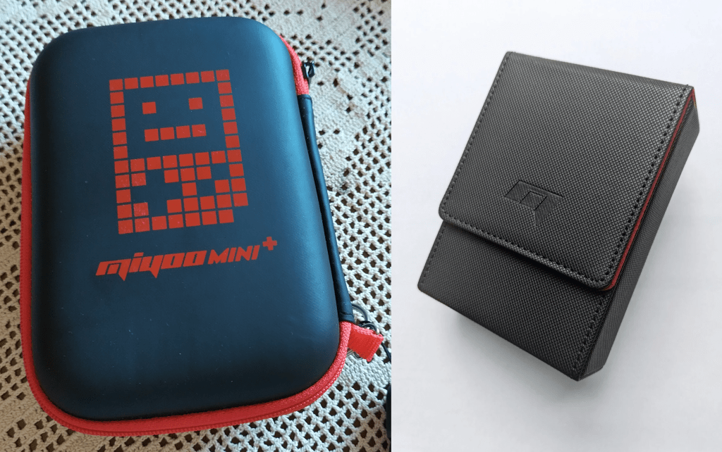 Con dodici dollari circa puoi farti spedire dagli USA una custodia per carte da mago in pelle e imbottitura, che, casualmente, è perfetta per custodire un Miyoo Mini (ma non il modello Plus), mentre per un euro puoi avere una custodia per carte di plastica trasparente da Aliexpress di identiche dimensioni, ed a 50 centesimi (esclusa spedizione, con arriviamo a due euro) una custodia di plastica trasparente per il Mini Plus originariamente progettata per mascherine e gioielli.