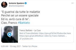 “‘E guarirai da tutte le malattie Perché sei un essere speciale Ed io, avrò cura di te. Ciao, Franco #Battiato.”