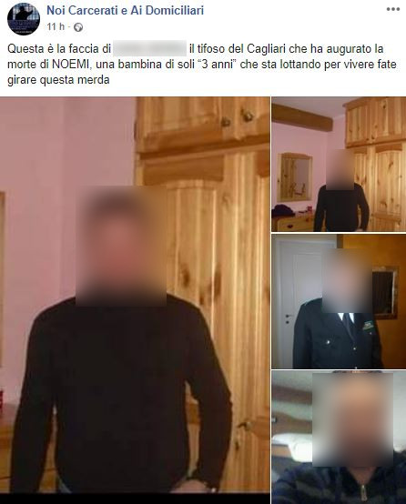 Questa è la faccia di (**** *****) il tifoso del Cagliari che ha augurato la morte di NOEMI, una bambina di soli “3 anni” che sta lottando per vivere fate girare questa me**a