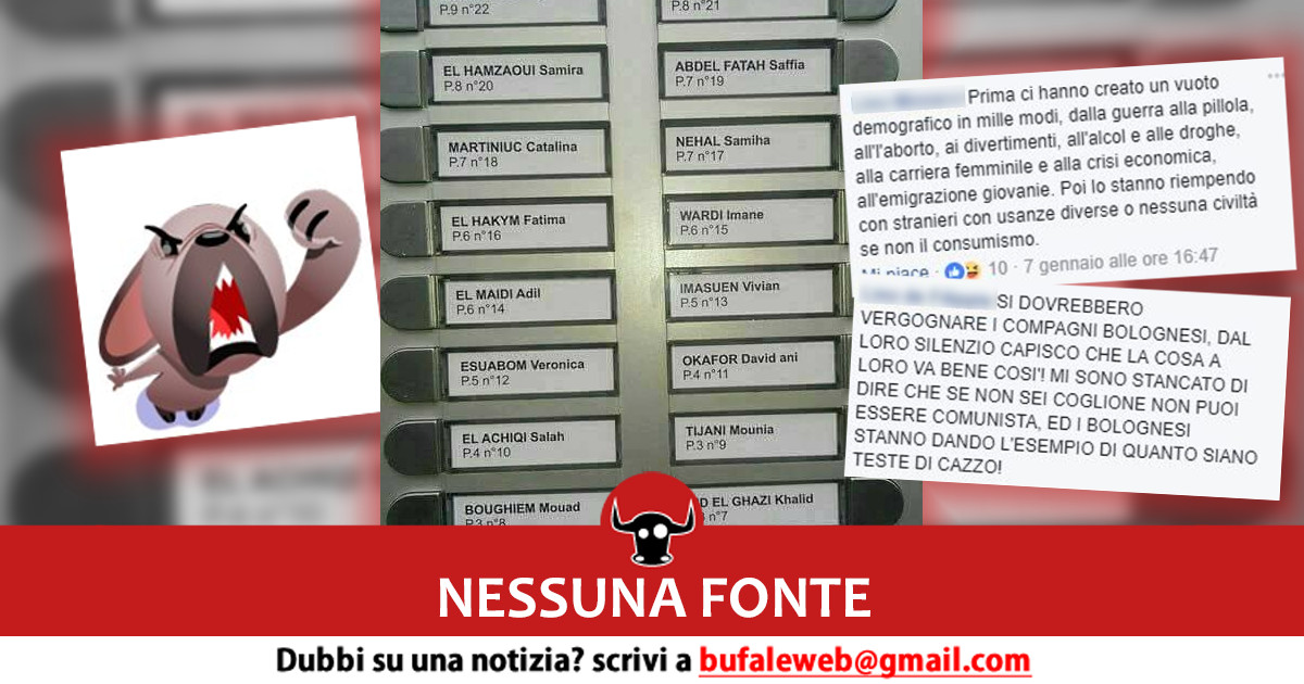 Non vi è alcuna prova che si tratti di Bologna né di case popolari, dunque parliamo di un post dimostrato da nessuna fonte. L’autore del post lo sa, ma la pancia dell’odio è sempre una colite da smaltire.