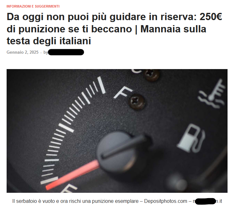Il sempre più ricco filone delle multe inventate si arricchisce dell’allarme sui “250 Euro se ti beccano in riserva”. Fake news a getto continuo, che si basano sul tema caldo del momento, il Codice della Strada.