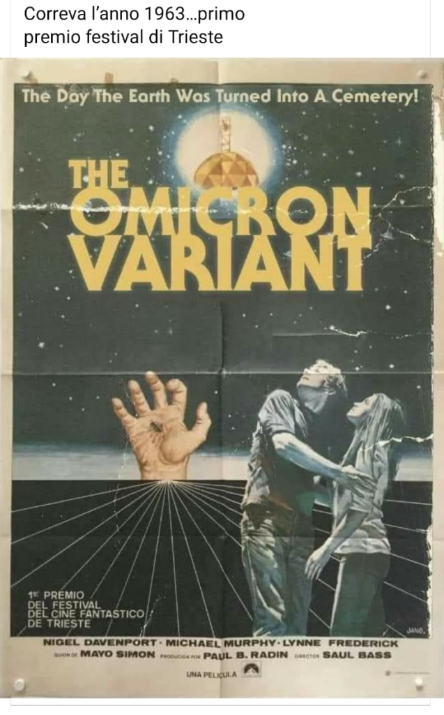 Non solo quindi il film “La Variante Omicron” non è mai esistito, ma il titolo che ci va più vicino, “Omicron” di Gregoretti parla di un alieno di nome Omicron e non di un virus.