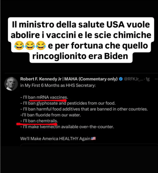 Ci segnalano i nostri contatti una bizzarra Instagram Stories secondo cui il “Ministro della salute USA vuole abolire i vaccini e le scie chimiche”.