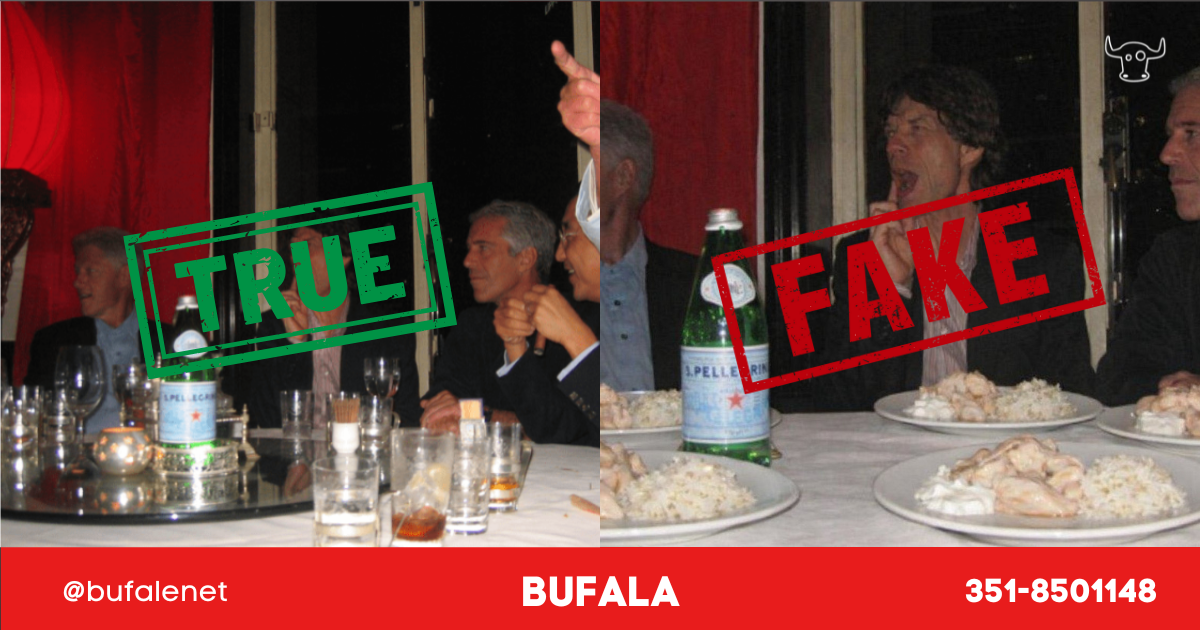 No, in questa foto non ci sono Clinton, Mick Jagger ed Epstein che mangiano carne umana