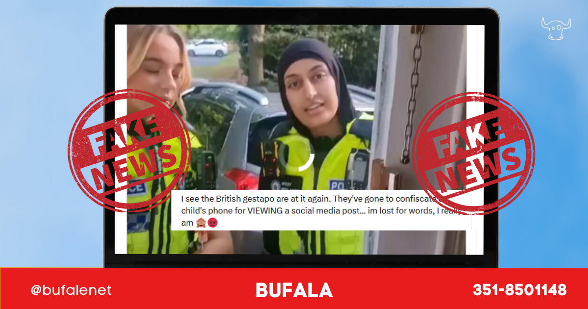 Ci segnalano i nostri contatti una serie di post social che mostrano la screenshot di un post X di una “spunta blu” che mostrerebbe due agenti di polizia inglesi, di cui una coi capelli velati, accusate di aver sequestrato un cellulare ad una ragazzina per aver visto un post mesi prima, chiamate quindi “gestapo”.