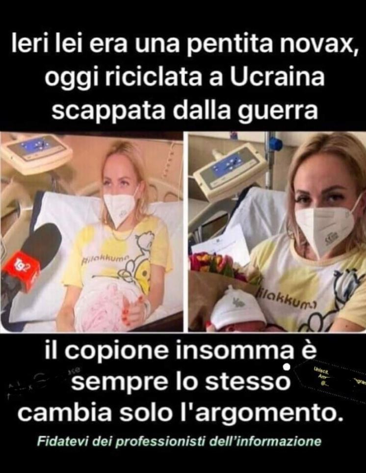 Inoltre una puerpera è stata investita, e tutt’ora lo è, dell’odio rabbioso dei Novax e dei Pro-Cremlino, e almeno dai secondi ne era sfuggita sotto le bombe per trovarseli in patria.