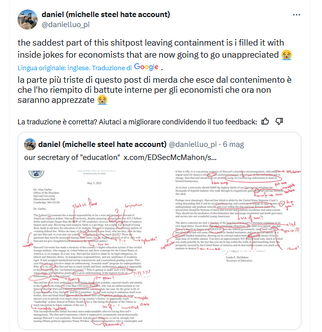 Non si tratta quindi di una correzione “ufficiale” di Harvard, ma della creazione di uno studente di economia che peraltro ha ammesso di aver inserito “citazioni che saranno apprezzate dagli esperti di economia”