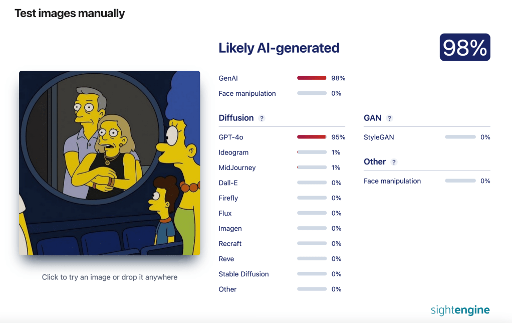 In nessuno degli episodi indicati nei vari commenti, come L’Uomo che Diventò Cena compare la scena indicata. Scena che secondo l’analisi di SightEngine è stata creata con ChatGPT 4o