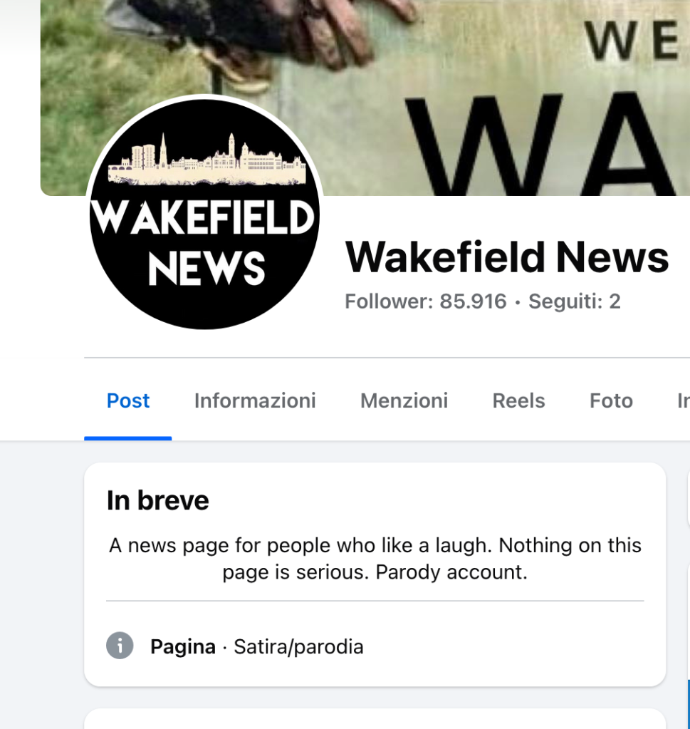 Il post originale è del portale “Wakefield news”, un portale parodia che non pubblica niente di serio per gente che sanno farsi una risata.