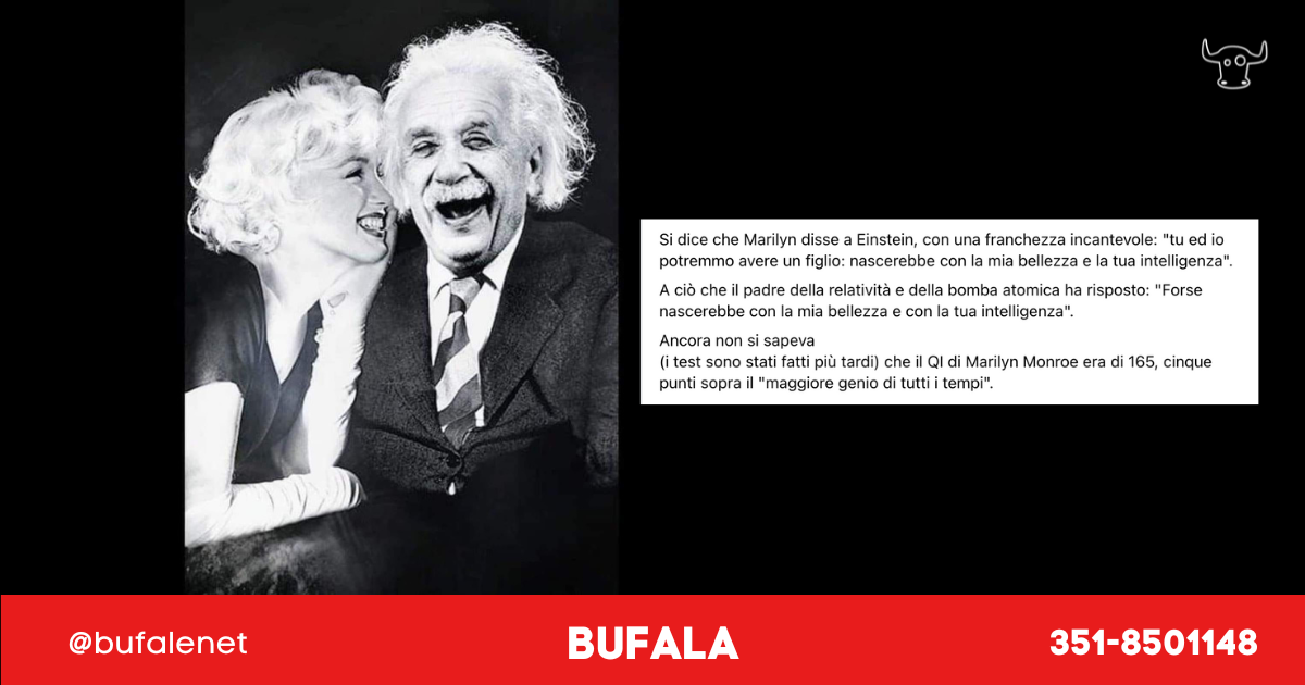 Non è vero che Marylin Monroe aveva un QI superiore a quello di Albert Einstein, come inferito da vari post social clickbait al riguardo, perché semplicemente (e arriviamo subito al punto e ritenetevi liberi di leggere l’articolo solo per edificazione personale e per prova di ogni elemento contrario) a nessuno dei due è importato mai di farsi un test del quoziente intellettivo e pubblicarlo.