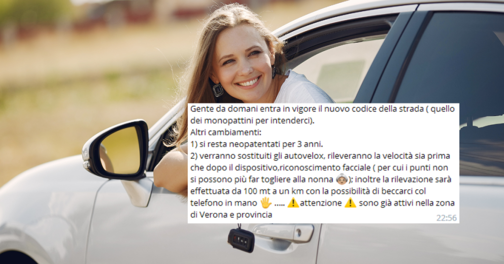 Ci segnalano i nostri contatti un post virale assai confusionario. Uno per cui il nuovo codice della strada entrerà in vigore domani, prevedendo una serie di adempimenti come “lo status di neopatentati per tre anni” e “autovelox col riconoscimento facciale”.
