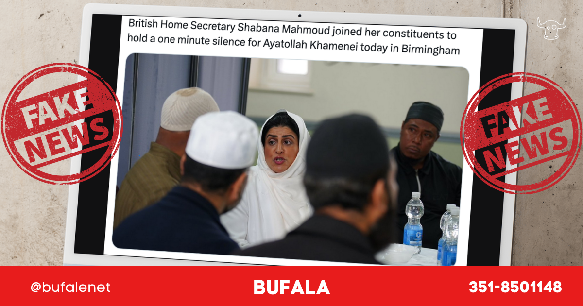 Ci segnalano i nostri contatti un post X che dovrebbe raffigurare la Segretaria di Stato per gli affari interni Inglese che offre un minuto di silenzio all’Ayatollah Khamenei. Il post, diffuso da una “spunta blu” sedicente patriota, capitalizza sulle origini Pakistane di Shabana Mahmood.