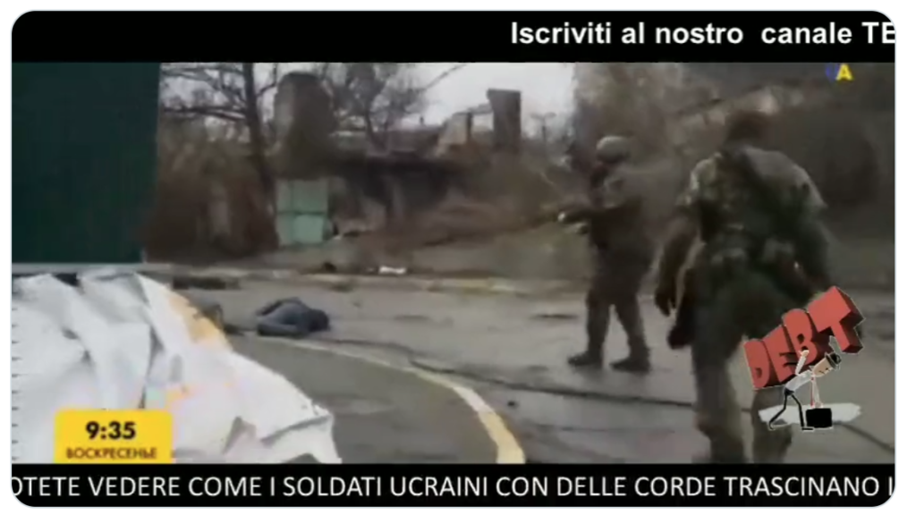 Ci segnalano i nostri contatti un presunto video di “soldati ucraini che spostano i cadaveri per le riprese”