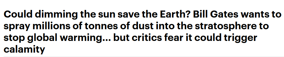 A leggere i titoli e le didascalie, potremmo essere indotti a pensare che Bill Gates abbia scoperto il segreto per oscurare il Sole, quindi dando ragione a generazioni di sciachimicari.