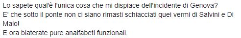 NON CONDIVIDERE Ponte di Genova: messaggio di odio contro Salvini e Di Maio