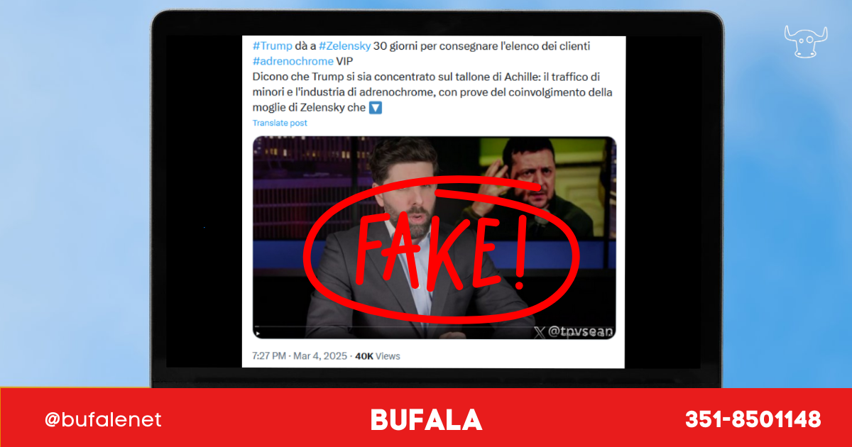 La bufala quindi collega le fallite trattative tra Trump e Zelensky al presunto “traffico di adrenocromo”.