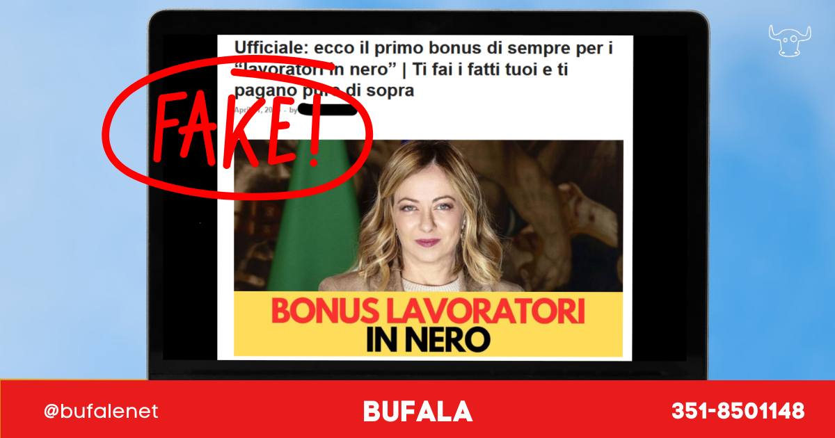 Ci segnalano i nostri contatti un improbabile quanto sgrammaticato “bonus lavoratori in nero”, sgrammaticato in quanto il titolo prosegue con un fuorviante e vernacolare “Ti fai i fatti tuoi e ti pagano pure di sopra”