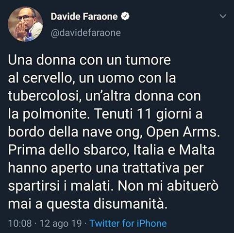 Ci segnalano i nostri contatti un tweet contente lo scoramento di Faraone, il suo “non mi abituerò mai a questa disumanità”.