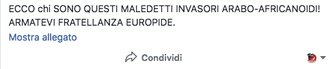 Il tutto, aggiungendo al pubblico di indinniati pronti a minacciare roghi, omicidi e violenze a caso per un Photoshop brutto con le parole “i vostri assassini”, coloro che dinanzi ad una smentita si sentono in diritto di condividere perché “potrebbe essere vera”