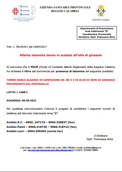 In allegato è presente un documento in formato pdf in cui è riportata la notizia del ritiro dal commercio del Tonno Algarve, in riferimento alle confezioni da 80 grammi x3 in olio di semi di girasole, proveniente dal Portogallo: