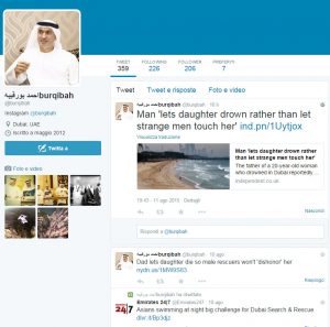 - “Non, un père n’a pas laissé sa fille se noyer à Dubaï cet été” (Rue89.nouvelobs.com, 12 agosto 2015 alle ore 8:55, che cita il Guardian) il quale riprende l’articolo di Francetvinfo.fr che a sua volta riprende dal Guardian;