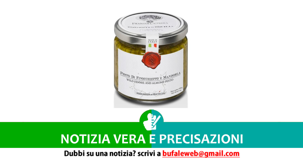 Il pesto di finocchietto e mandorle distribuito da Segreti di Sicilia e prodotto nello stabilimento Frantoi Cutrera SRL è stato veramente ritirato. Lo conferma Il Fatto Alimentare con un articolo del 6 luglio 2018: