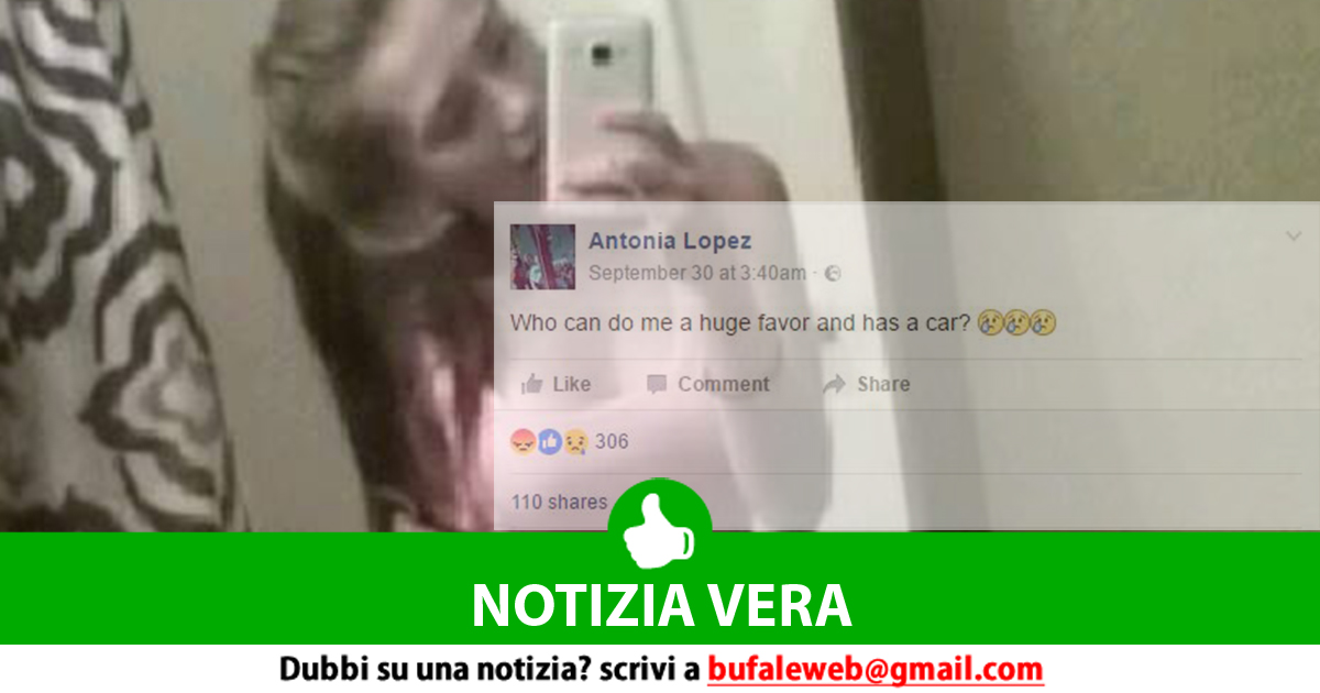 Per confermare ulteriormente l’accaduto abbiamo rintracciato il profilo Facebook di Antonia Lopez. L’ultimo post, quello in cui faceva un appello ai suoi contatti, è reale: