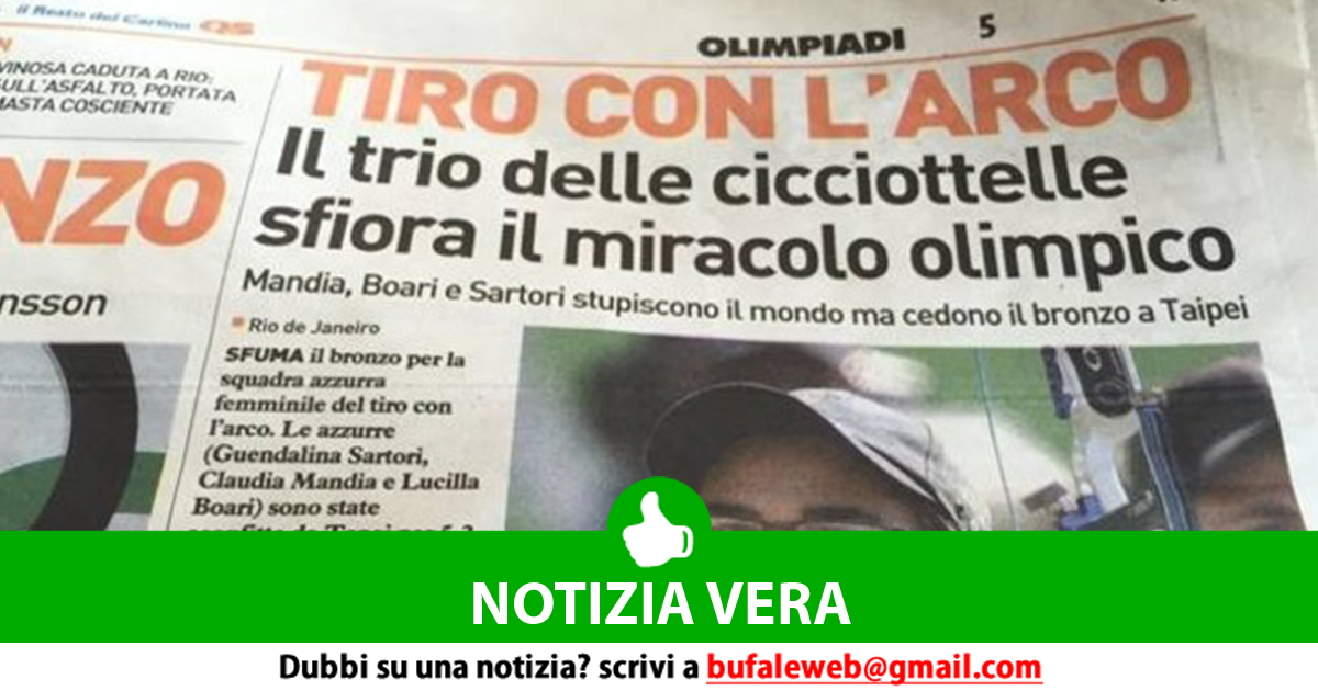 È dunque vero che sul Resto del Carlino sia comparso un titolo che indicava come “cicciottelle” le tre azzurre classificatesi al 4° posto nella gara di tiro con l’arco contro Taipei, a Rio de Janeiro. Dopo le polemiche, dunque, l’Editore ha sollevato il direttore Giuseppe Tassi dall’incarico.