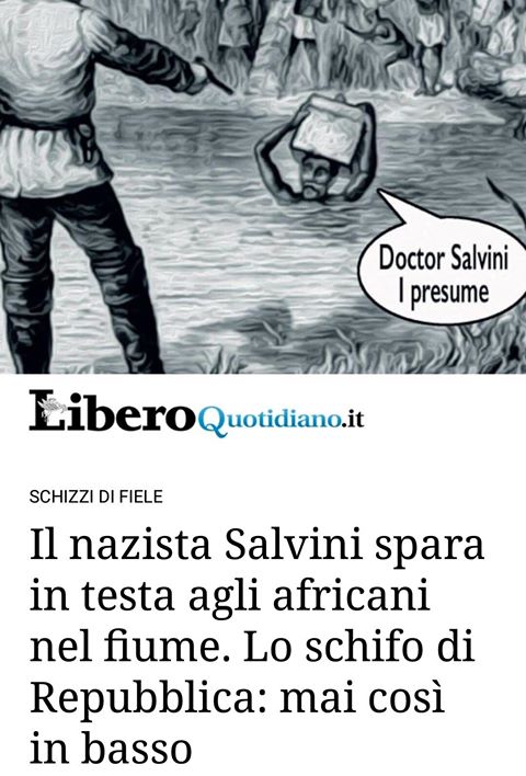 Il nazista Salvini spara in testa agli africani nel fiume. Lo schifo di Repubblica: mai così in basso