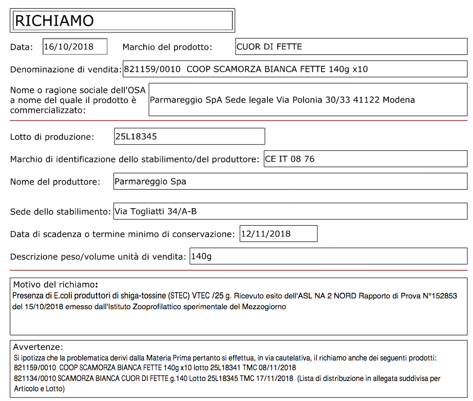 Questo non significa che la scamorza affumicata Cuor di Fette sia un alimento pericoloso, al contrario: come vedete, viene costantemente controllato e eventuali lotti contaminati individuati a tempo record