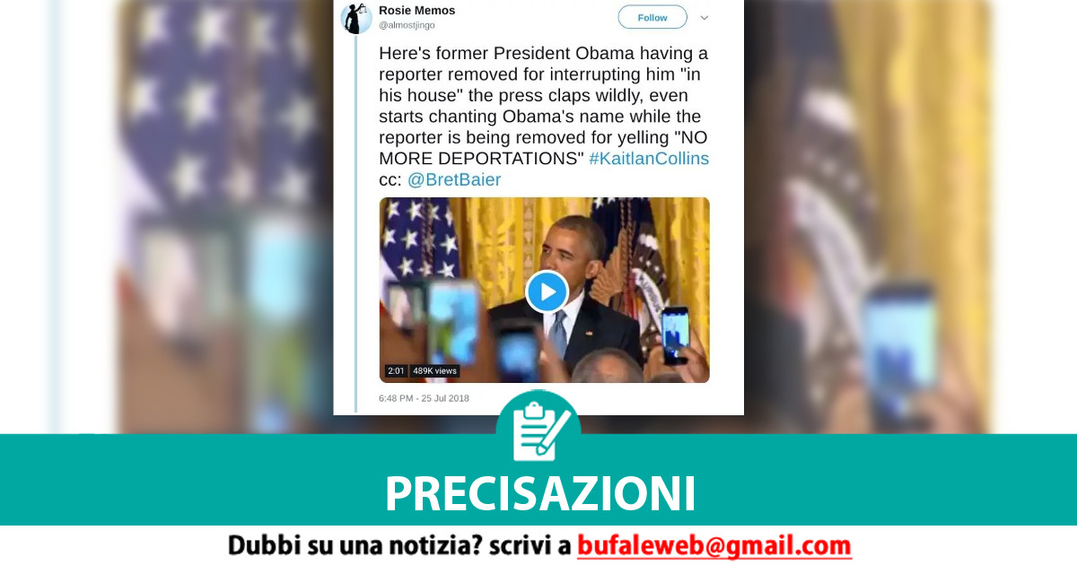 Subito gli utenti dei social media hanno ripreso una vecchia storia, affermando che il presidente Obama ha avuto un rapporto altrettanto controverso con la stampa. Come prova, un video che presumibilmente mostrava l’espulsione di un reporter da una conferenza stampa di Obama: