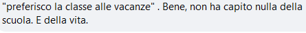 “preferisco la classe alle vacanze” . Bene, non ha capito nulla della scuola. E della vita.