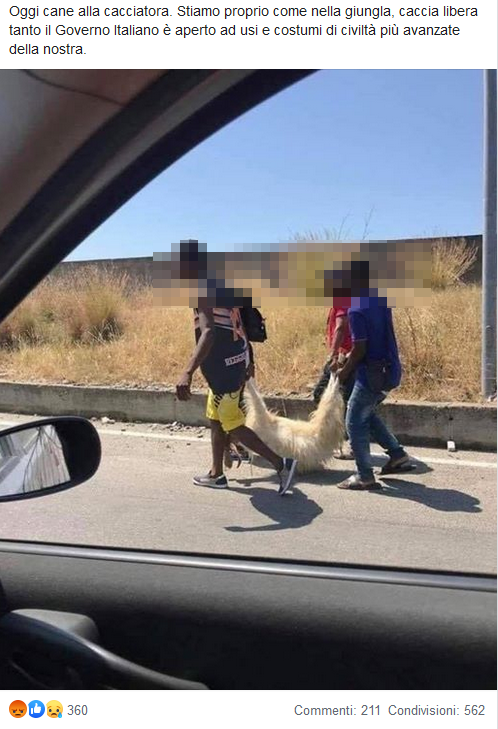 “Ecco come un povero cane viene trattato dagli immigrati a cui il PD ha aperto le frontiere della nostra Patria. Vergogna!!!”