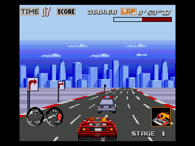 Secondo punto a favore, l’uso del motore grafico e Hardware di Space Harrier consentiva una simulazione del 3D imprevista per gli standard dell’epoca, e per la prima volta in un gioco di guida ti trovavi in una autostrada a più corsie con la visibilità ridotta tra auto che ti venivano addosso ed auto da superare.