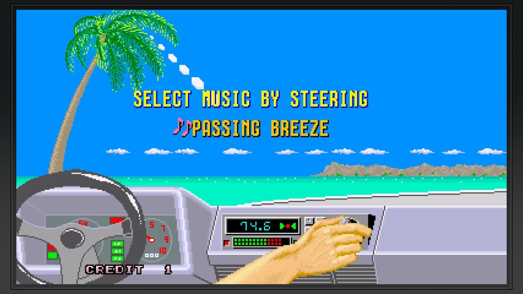 In realtà Suzuki e Kawaguchi avrebbero voluto otto musiche scelte tra “quello che avrebbero voluto sentire in un lungo viaggio”, ma per quanto l’hardware di Outrun fosse tra i più performanti dell’epoca, semplicemente non c’era spazio per otto melodie synthwave da 150 bpm, come non c’era spazio per otto veicoli diversi e diverse scene tra un livello/circuito e l’altro per raccontare la storia delle otto coppie di piloti.